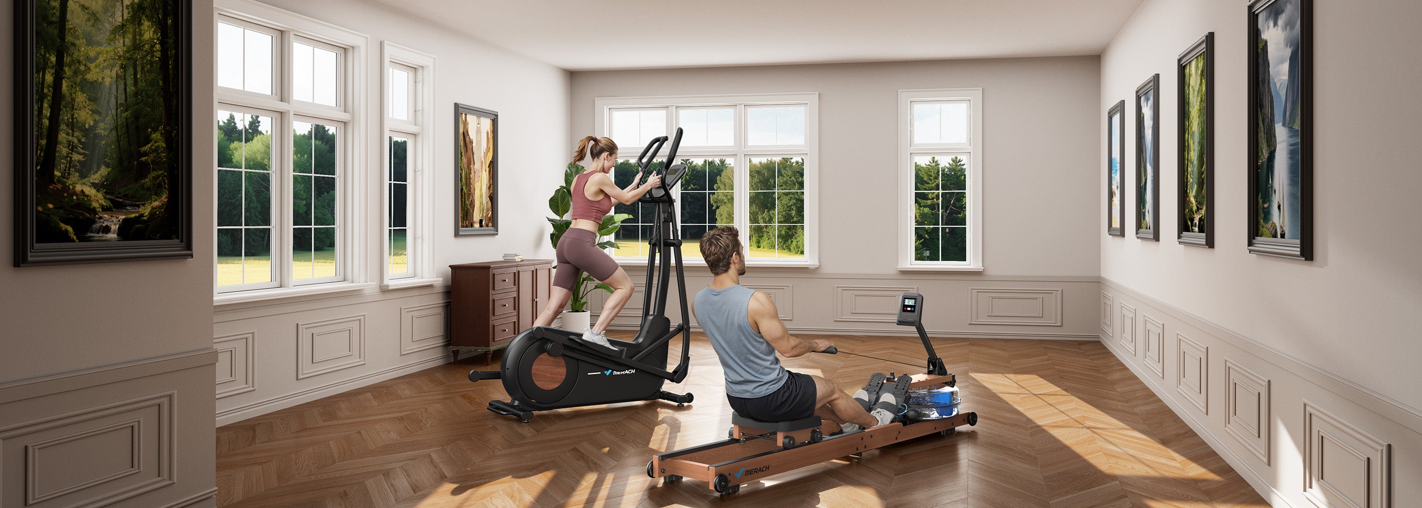 This duo offers effective full-body training with great variety. The elliptical strengthens endurance and leg muscles, while the rowing machine also builds the back, arms, and core – ideal for low-impact, varied workouts at home.