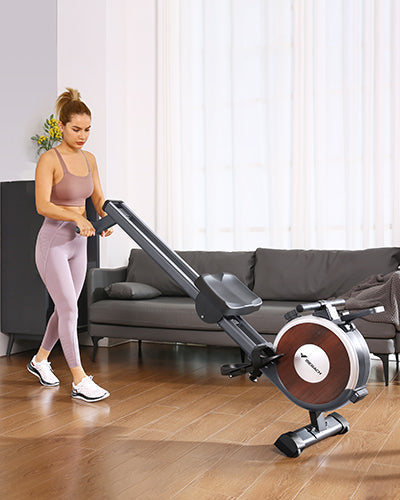 The built-in base wheel makes it effortless to move the rowing machine without assistance.
