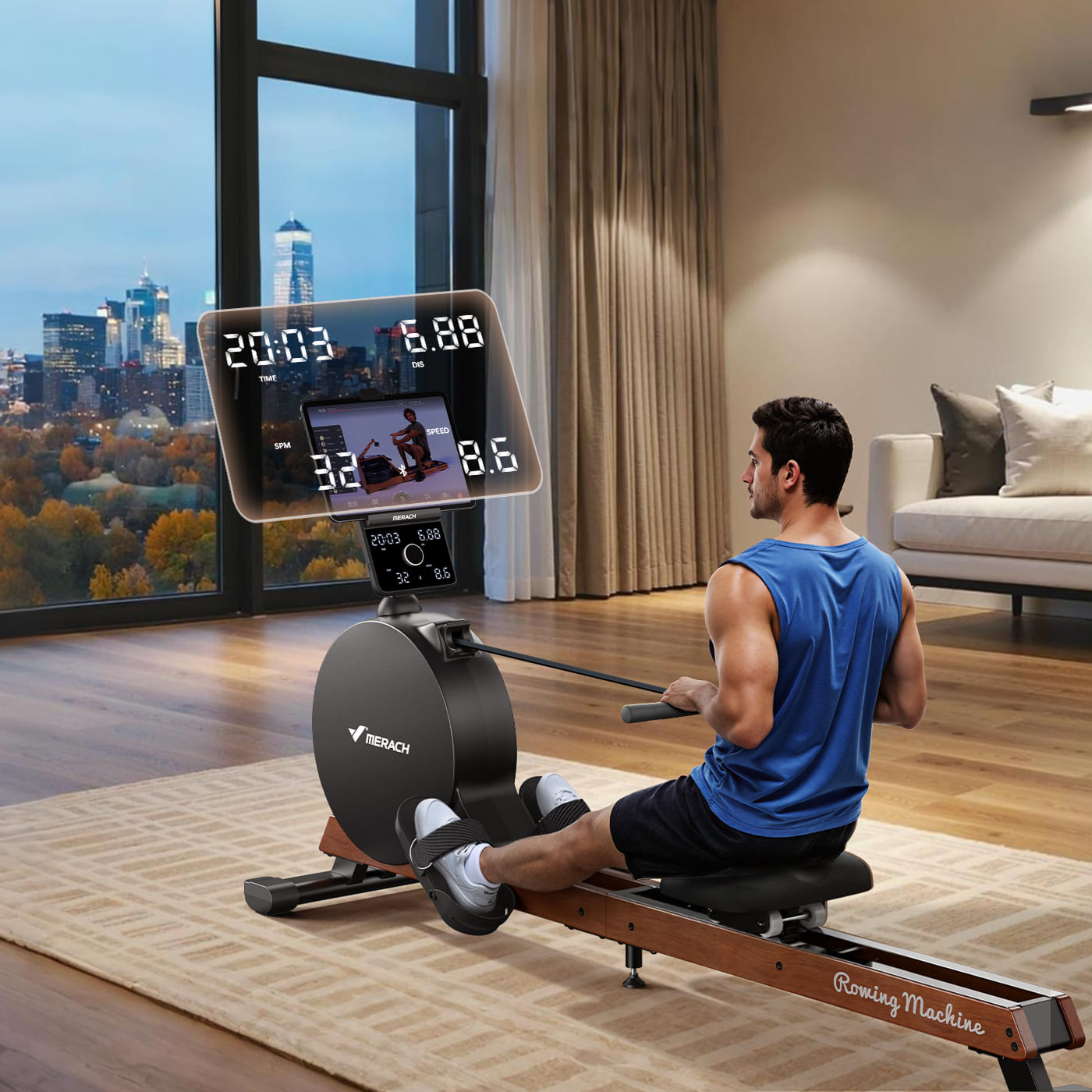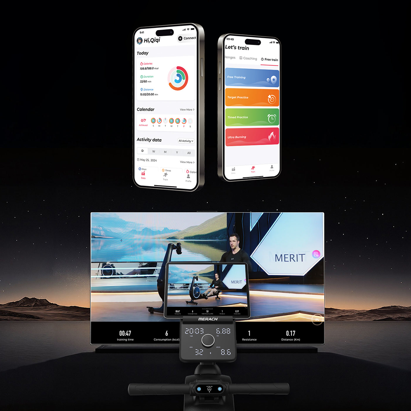 Merach rowing machine supports three convenient resistance-adjusting methods; In the course, resistance can more intelligently follow changes without you having to manually pause the operation, allowing you to focus more on your movements and breathing.
