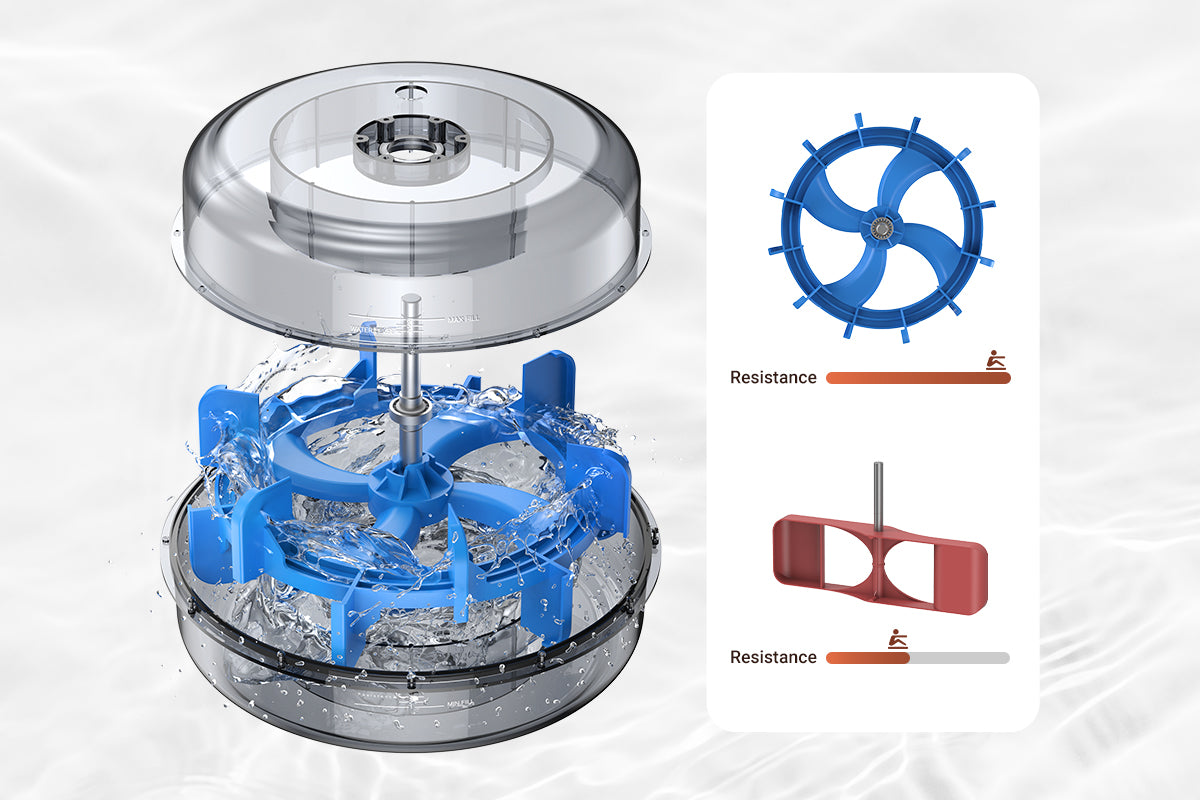 We have equipped the device with 12 propeller blades to increase resistance. The built-in 22-liter water tank allows for further adjustment and enhancement of resistance, giving you a more realistic rowing experience on the water. This makes your workout more enjoyable and efficient.