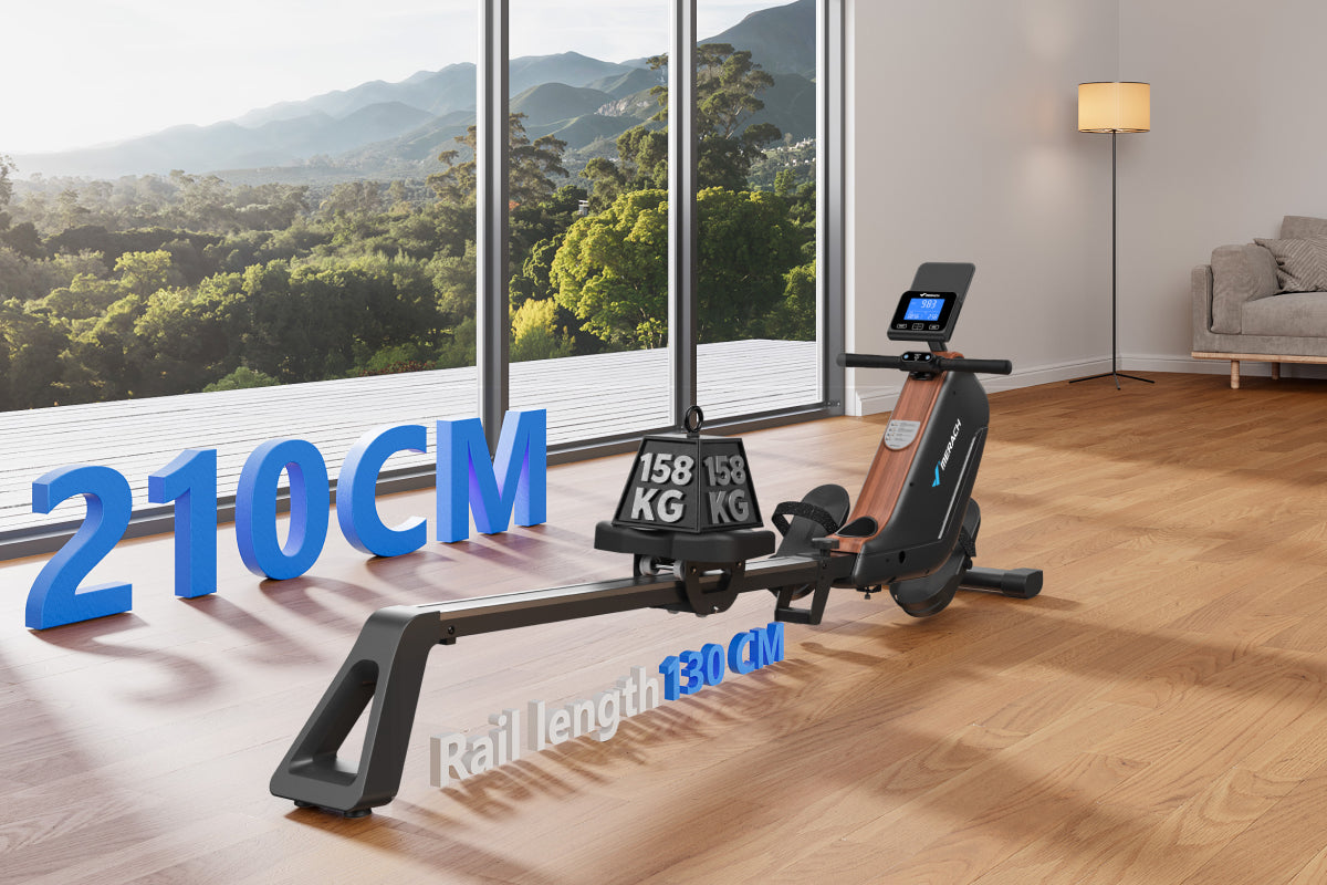 The 130 cm extended rail allows for full muscle extension and powerful strokes with every pull. Supporting users up to 158 kg, it delivers enhanced stability and safety throughout your workout.
