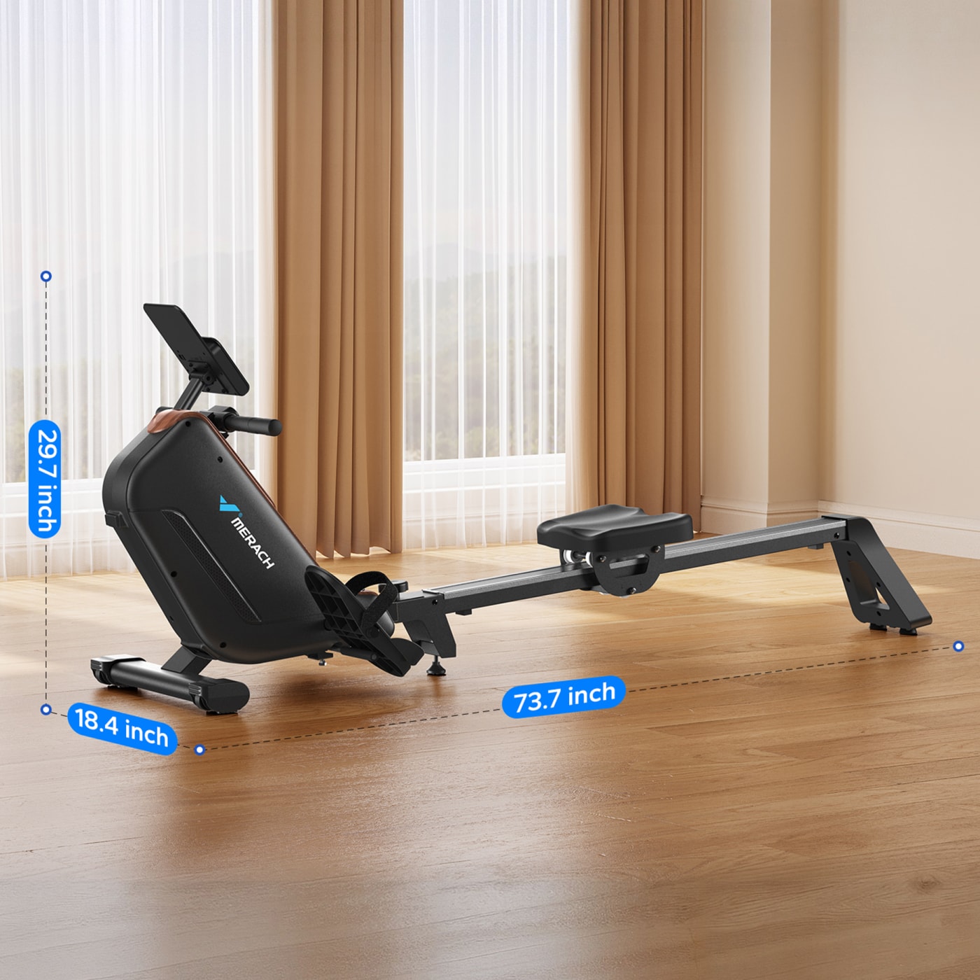 Foldable, quiet and easy to use: automatic resistance adjustment via the MERACH App, joint-friendly ergonomic design, and 16 resistance levels up to 40 kg — suitable for all fitness levels.