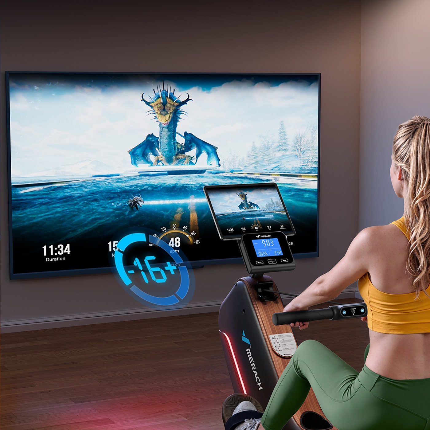 Resistance can be adjusted automatically via the MERACH App or manually using the upgraded handle controls. With both options, you can fine-tune your workout intensity in just 3 seconds, tailoring your fat-burning programme to your personal goals.