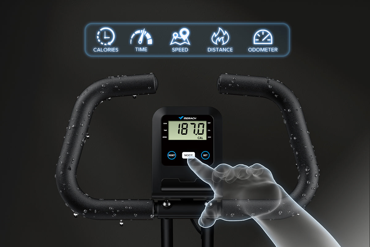 Displays time, speed, distance, calories, and total distance. The clear screen makes it easy to monitor your workout in real time.