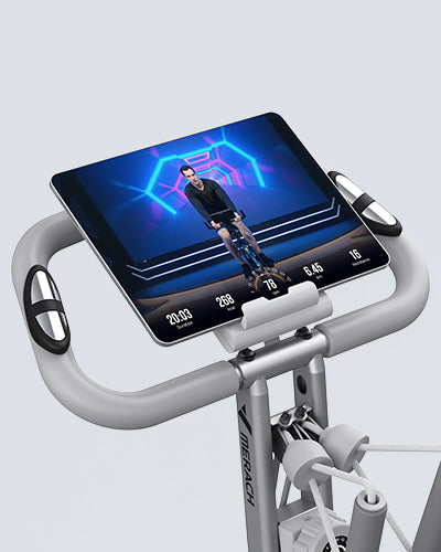 The interactive LCD screen allows you to track your workout progress and other data in real time. A built-in tablet stand lets you follow workout guides while exercising. The foldable MERACH exercise bike meets your diverse fitness needs. (Tablet not included)