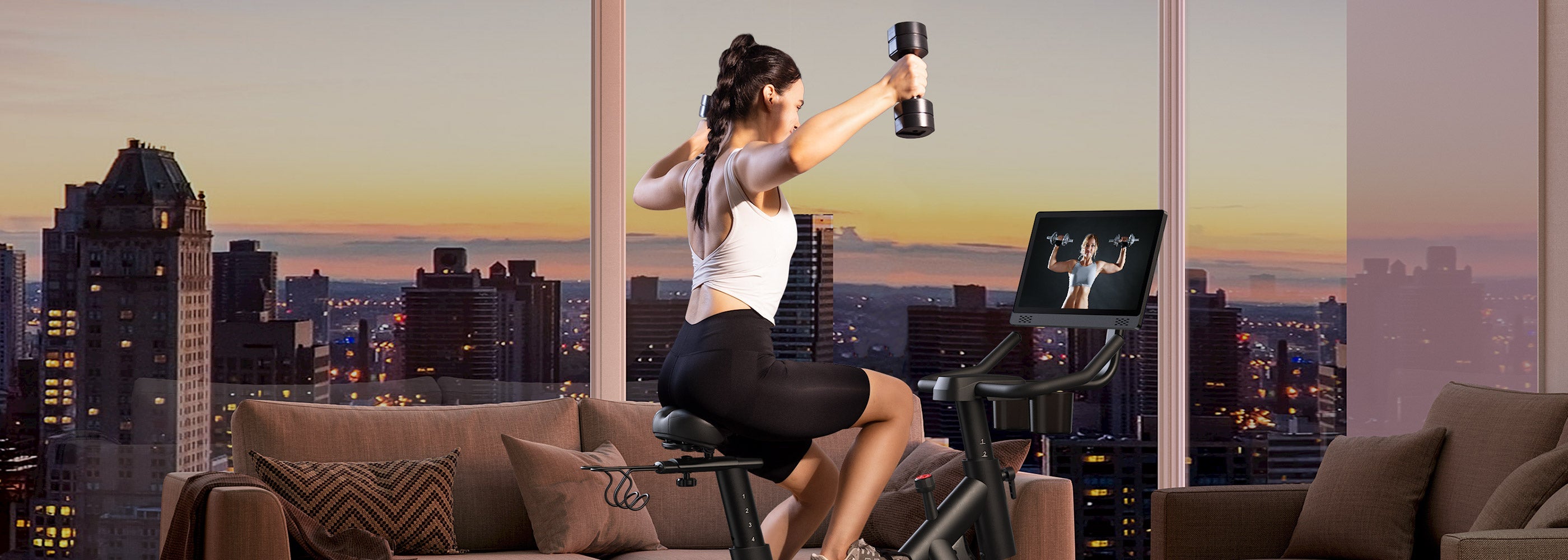 Adjust the screen’s tilt and swivel to follow your HIIT workouts from any angle—whether you're on or off the bike.
