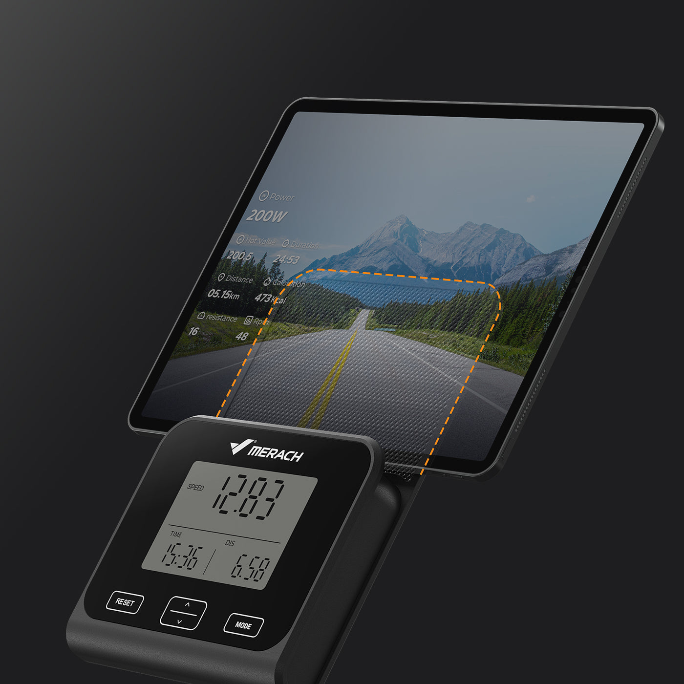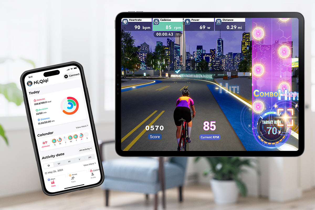Connects to the MERACH app and FantomFite gaming app. Track resistance levels, distance, time, calories burned, and heart rate (BPM) in real time. Sync data easily with Google Fit and Apple Health.