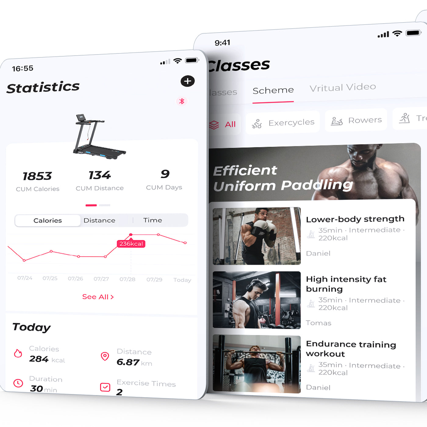 Once the foldable treadmill is connected to the app, you can conveniently run on the coastal pier, compete with players from around the world, and enjoy the most professional fitness course guidance. You can also track your workout data in real time.