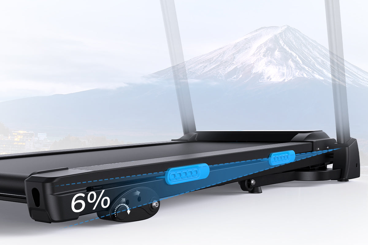 The Merach treadmill with incline features three incline levels: 0%, 3%, and 6%, making fat burning easier! Compared to traditional treadmills, fat burning is 40% more efficient!