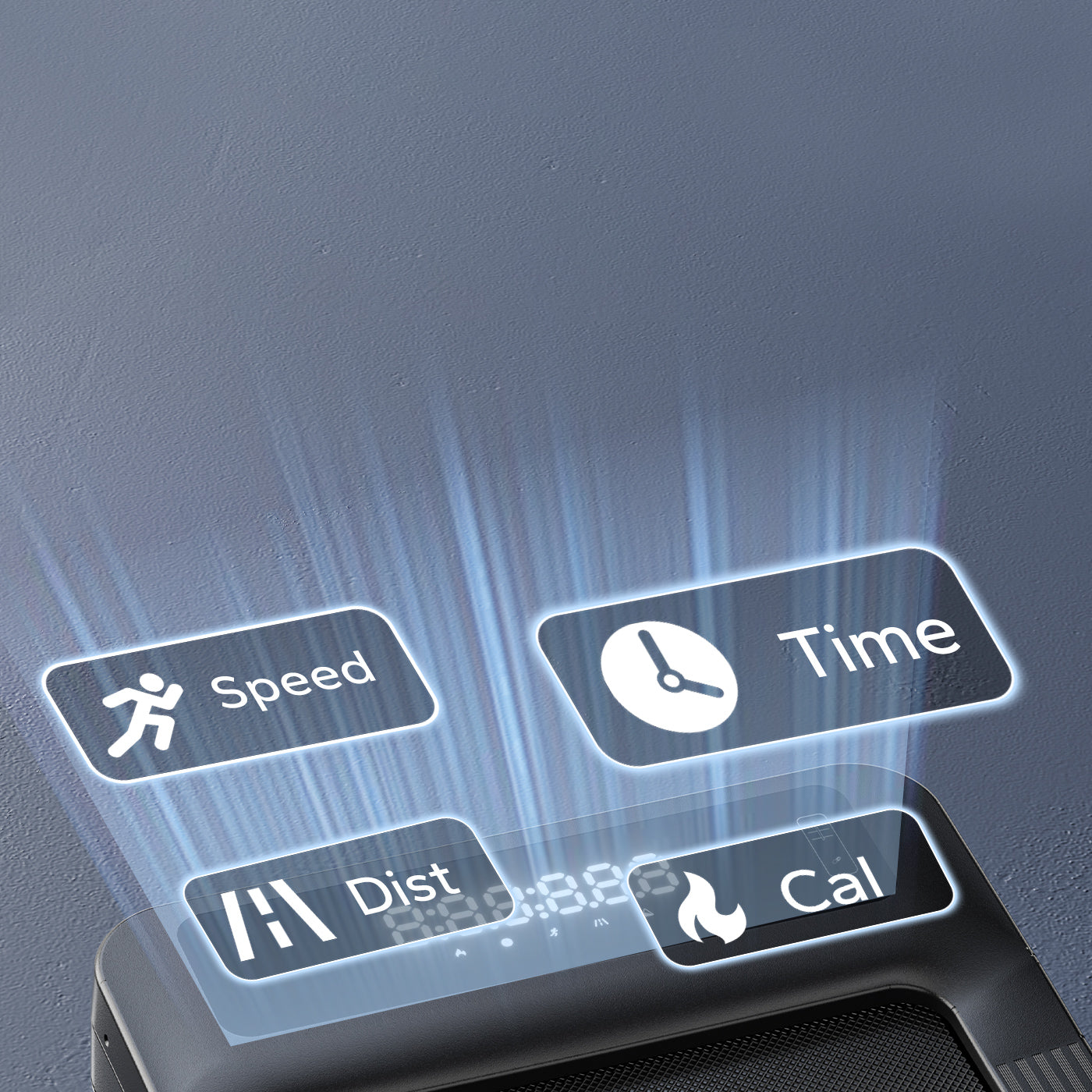 - LED Data Display: Calories, Time, Speed, Distance, Incline